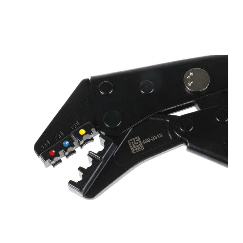From the trusted RS PRO brand this ratchet action crimping tool is designed for use with insulated terminals, and easily crimps ring, spade and bullet crimp terminals onto appropriate wires and cables. The different crimp sizes are even colour-coded for further ease of use, and are suitable for use on insulated vinyl, polycarbonate and nylon Red, Blue and Yellow.